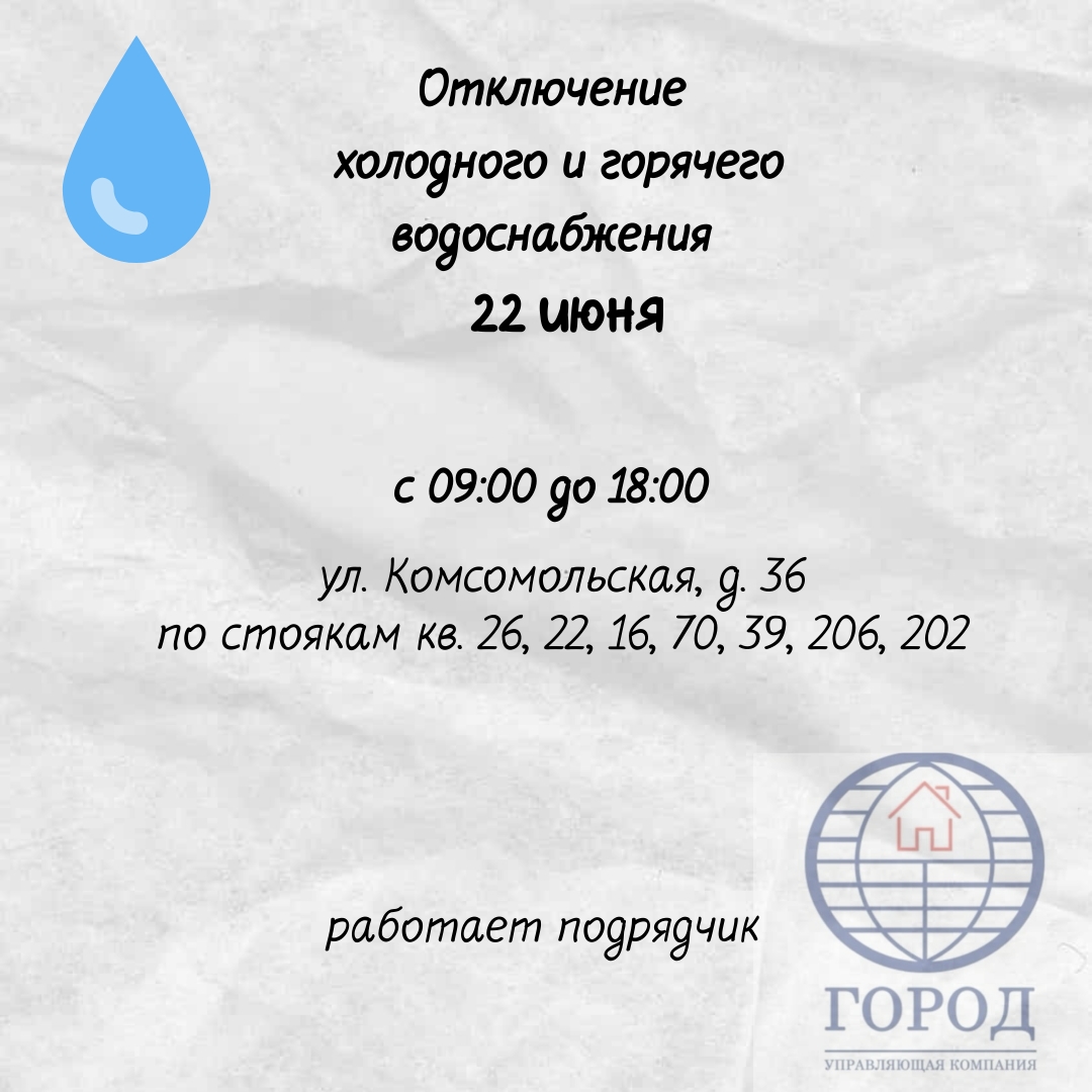 22.06.2025 Отключение водоснабжения