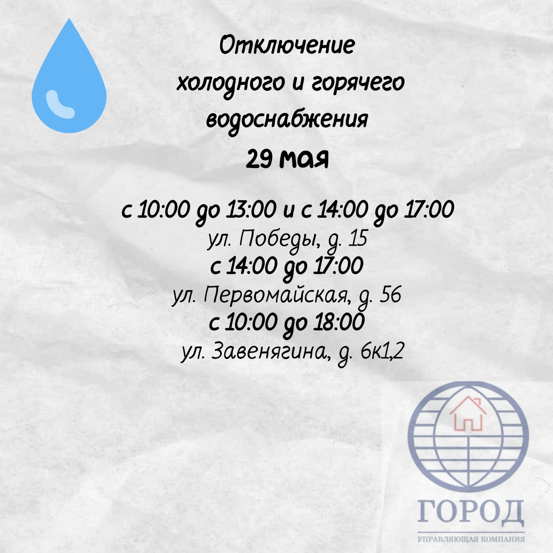 29.05.2025 Отключение водоснабжения