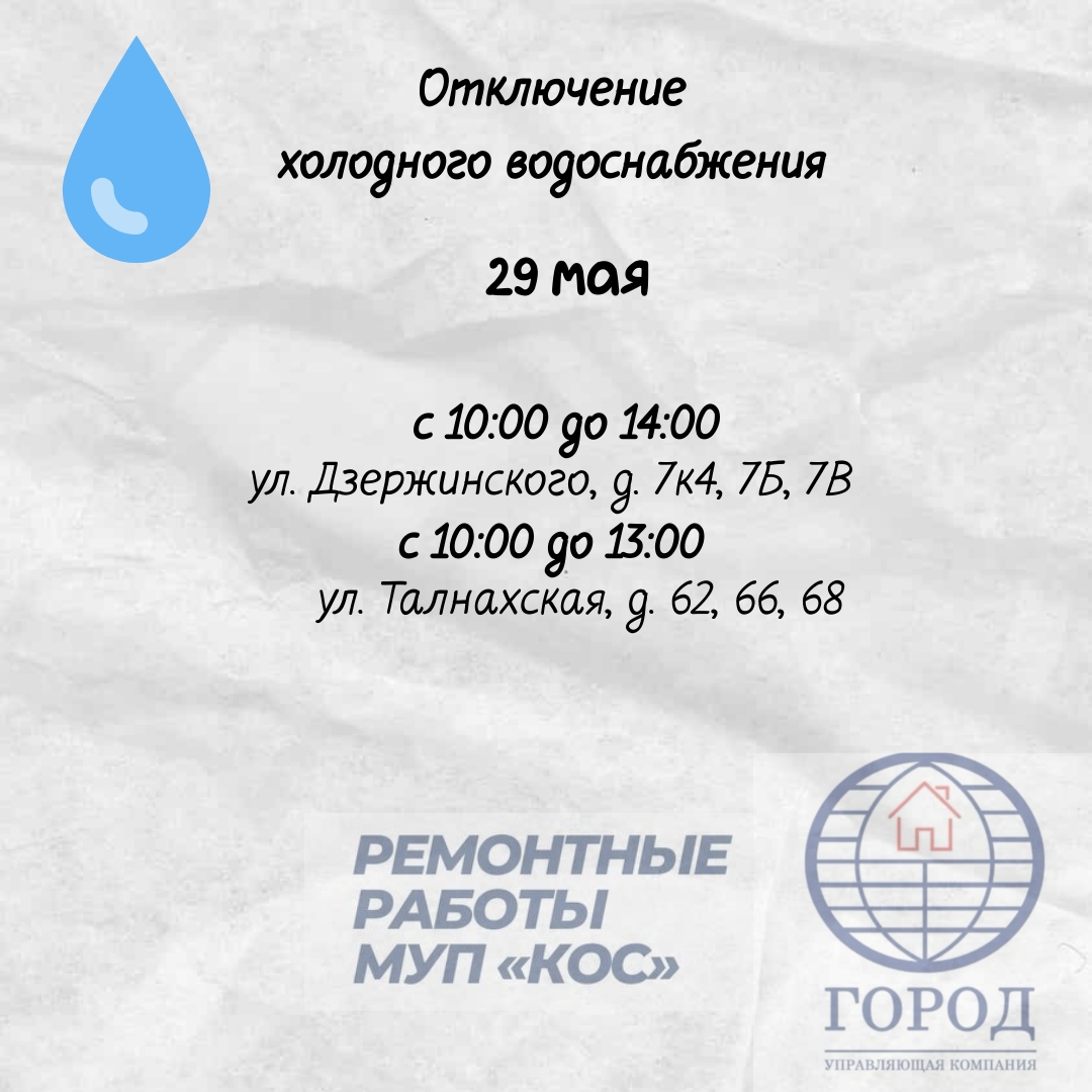 29.05.2025 Отключение водоснабжения
