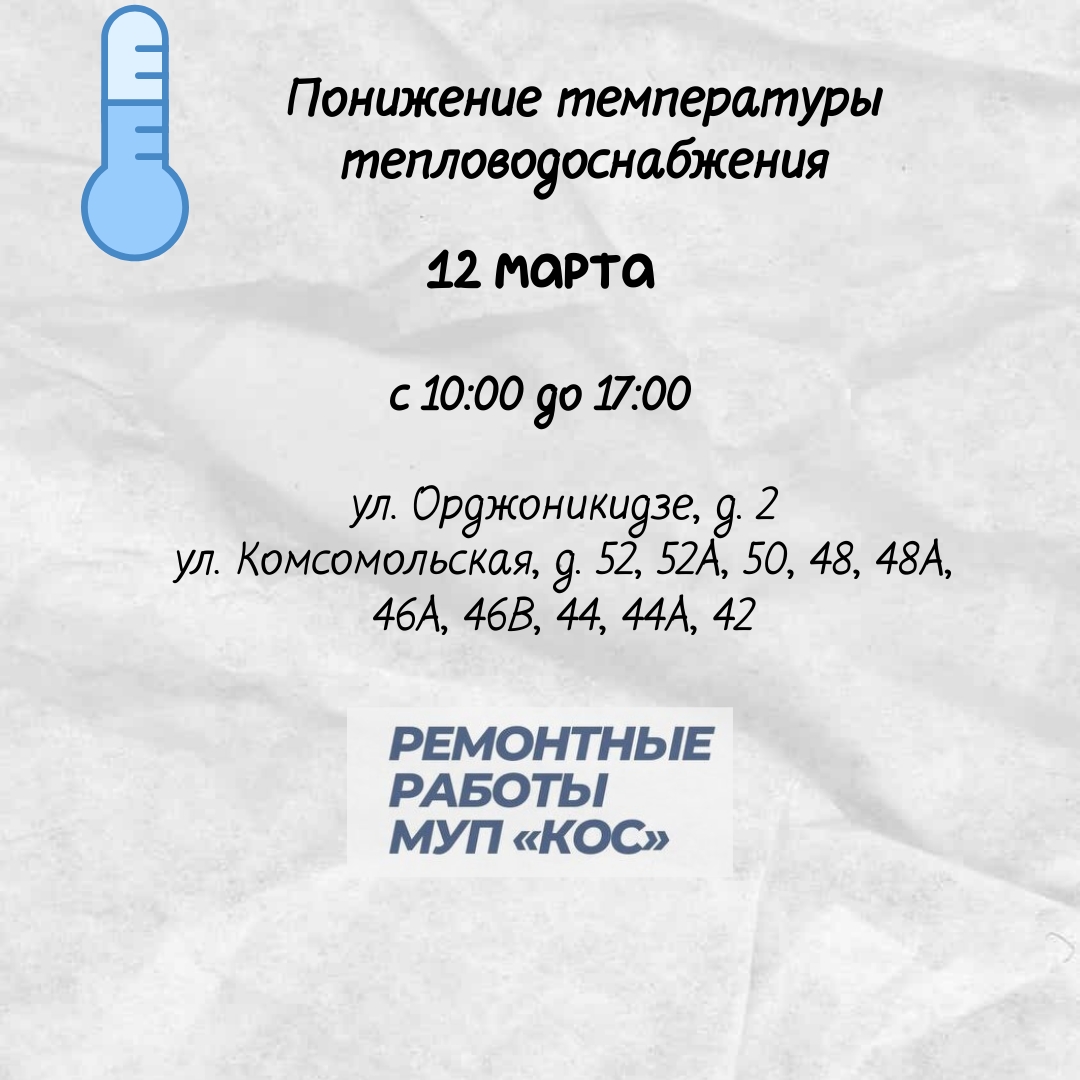 12.03.2025 Понижение температуры тепловодоснабжения