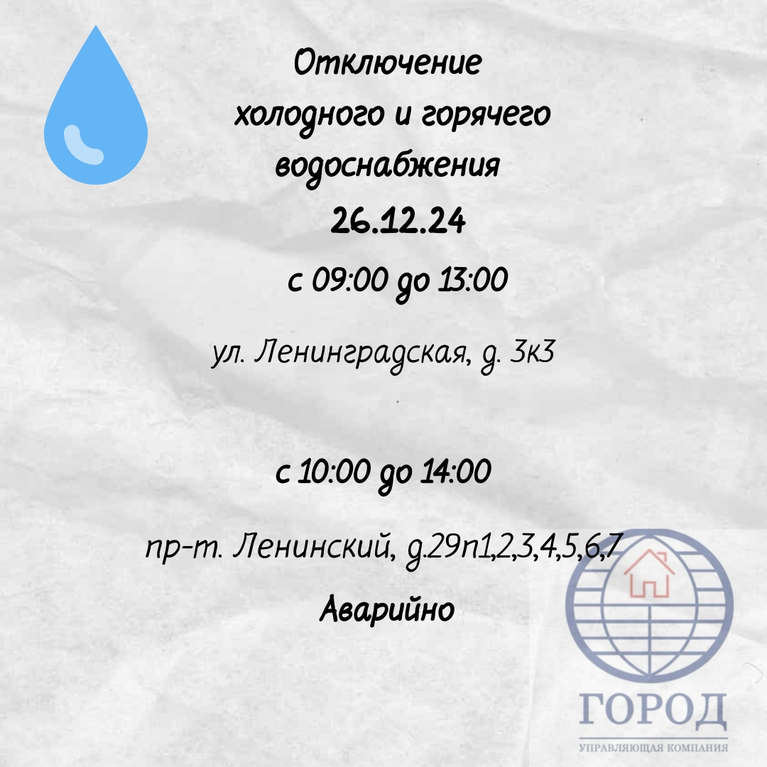 26.12.2024 Отключение водоснабжения