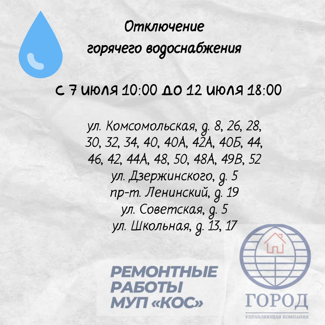 07.07.2025 - 12.07.2025 Отключение водоснабжения