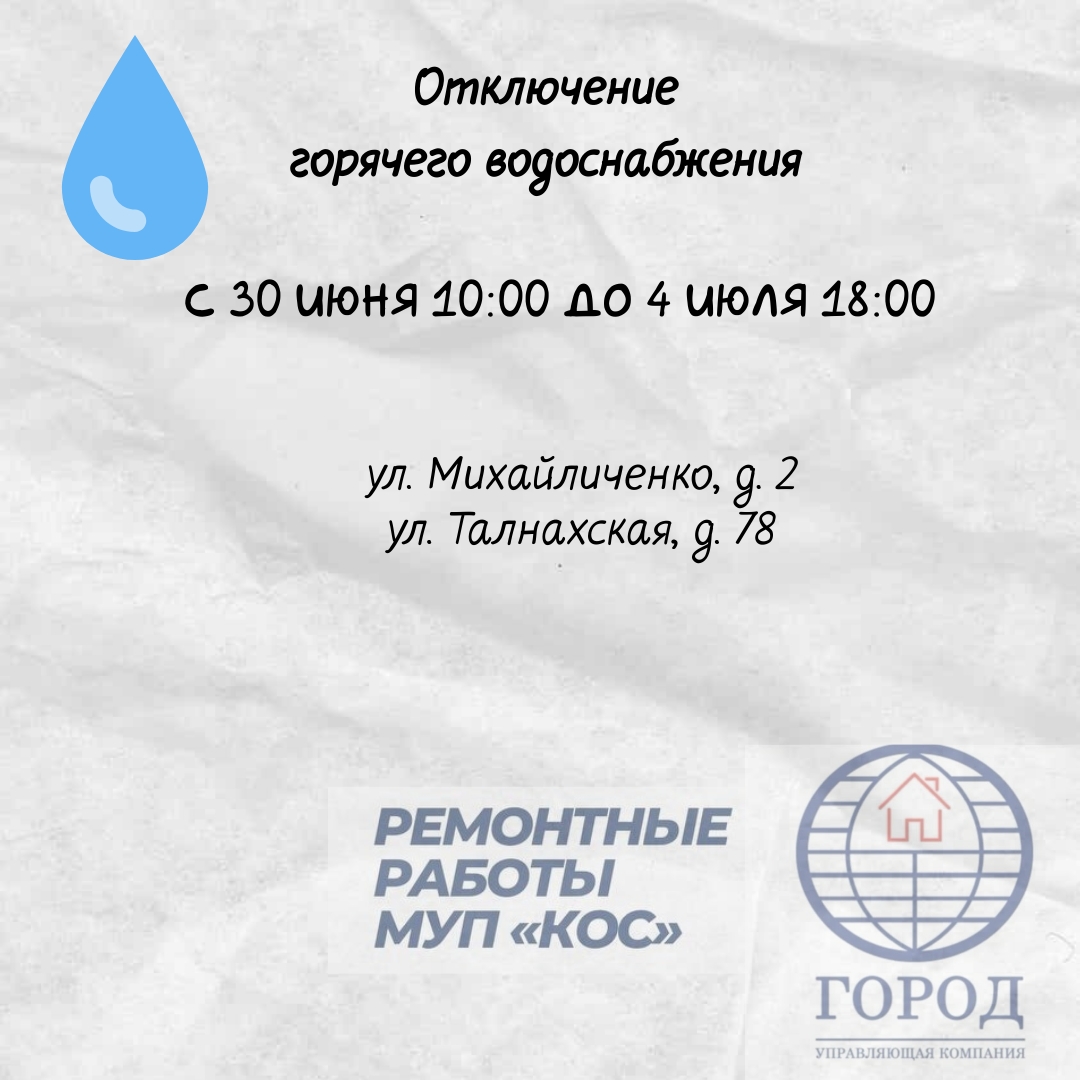 30.06.2025 - 04.07.2025 Отключение водоснабжения