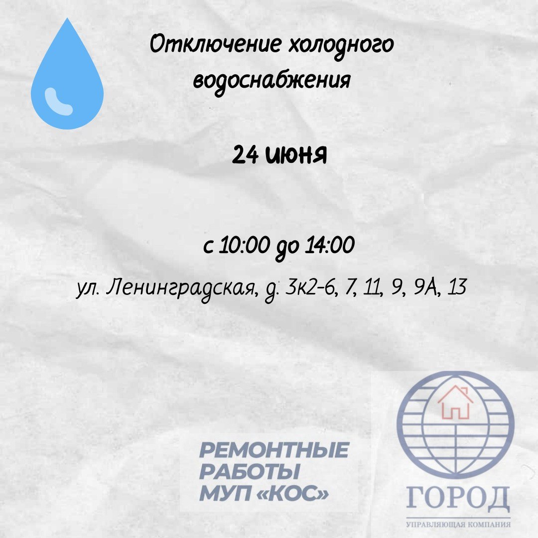 24.06.2025 Отключение водоснабжения
