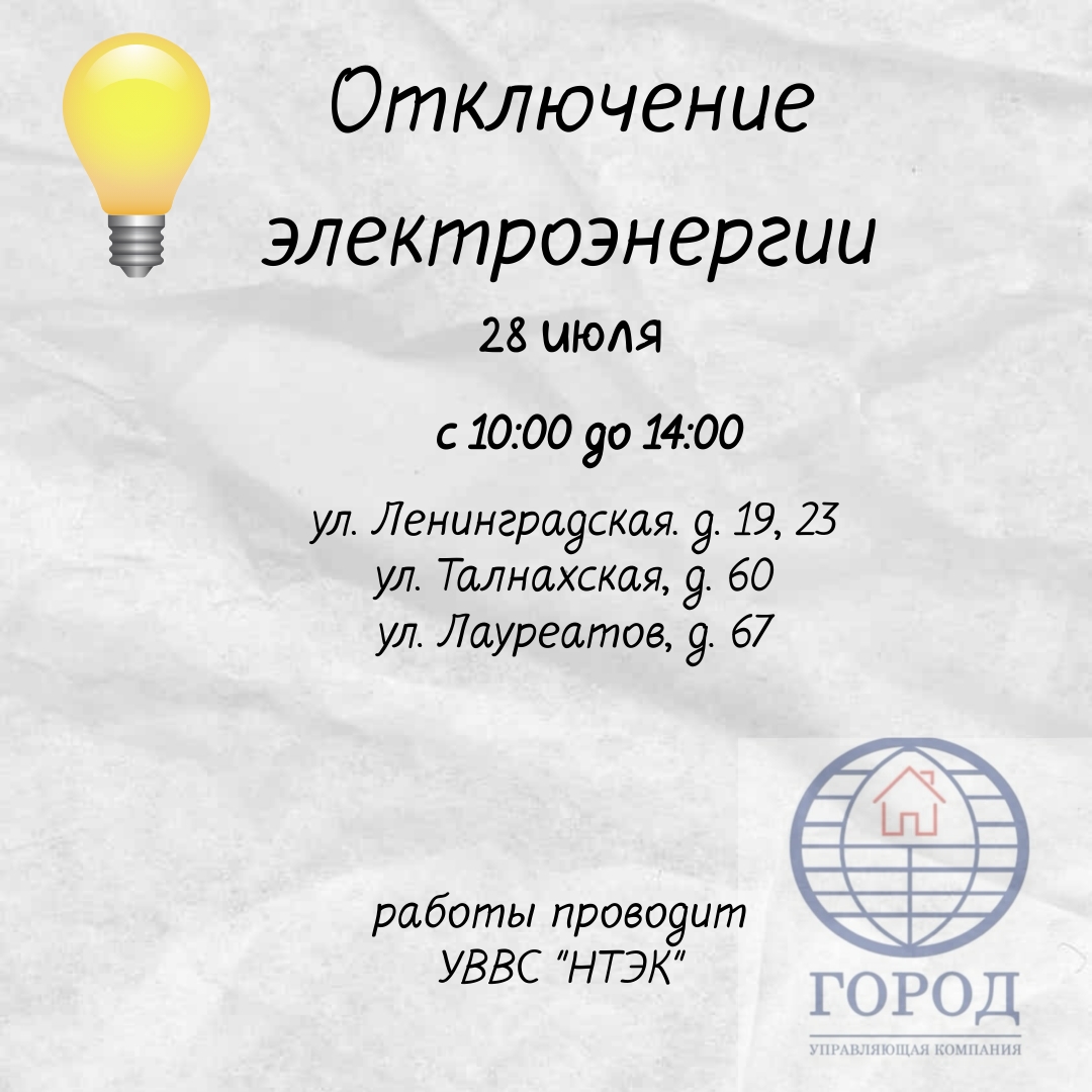 28.07.2025 Отключение электроэнергии