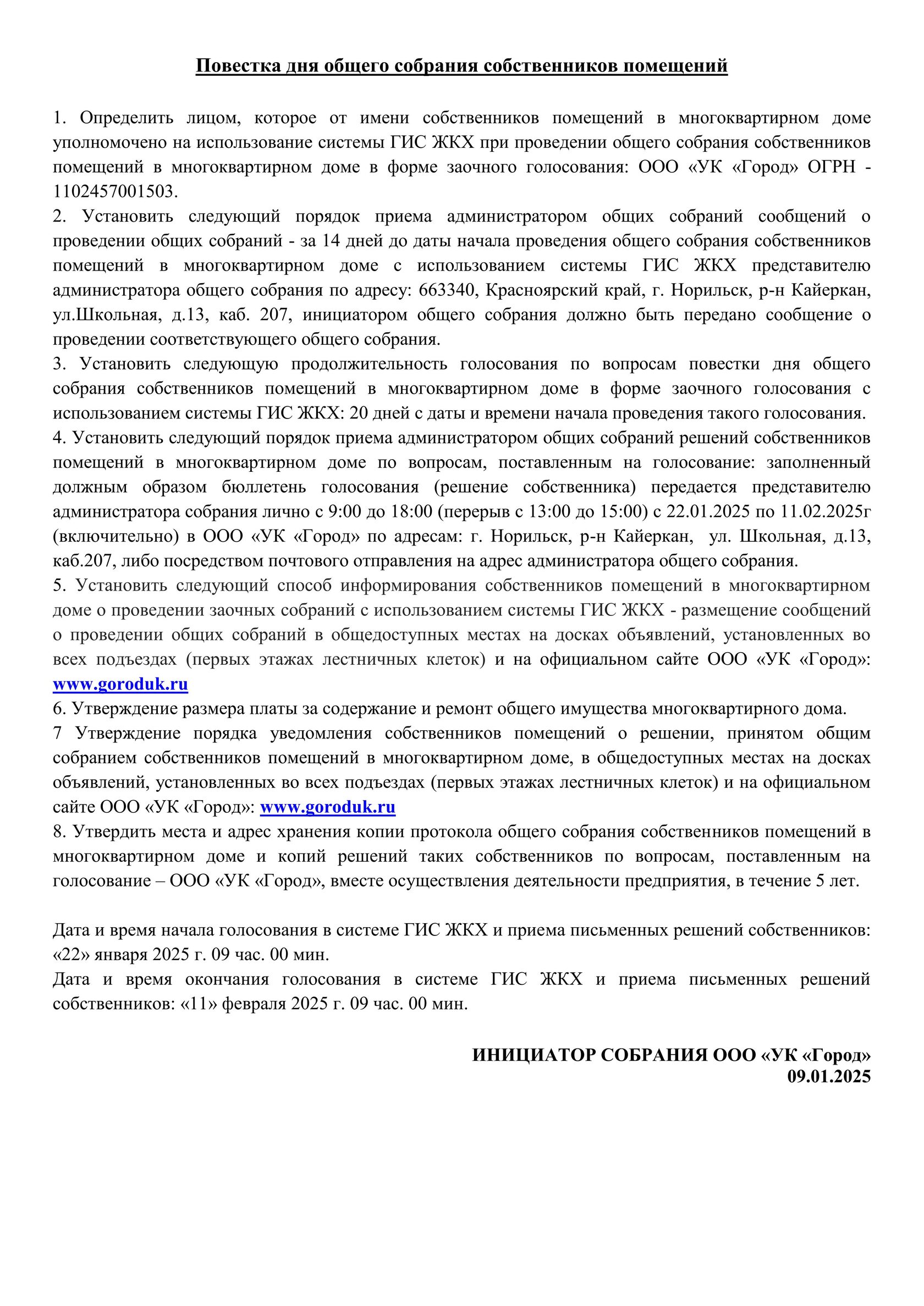 Сообщение о проведение ОСС