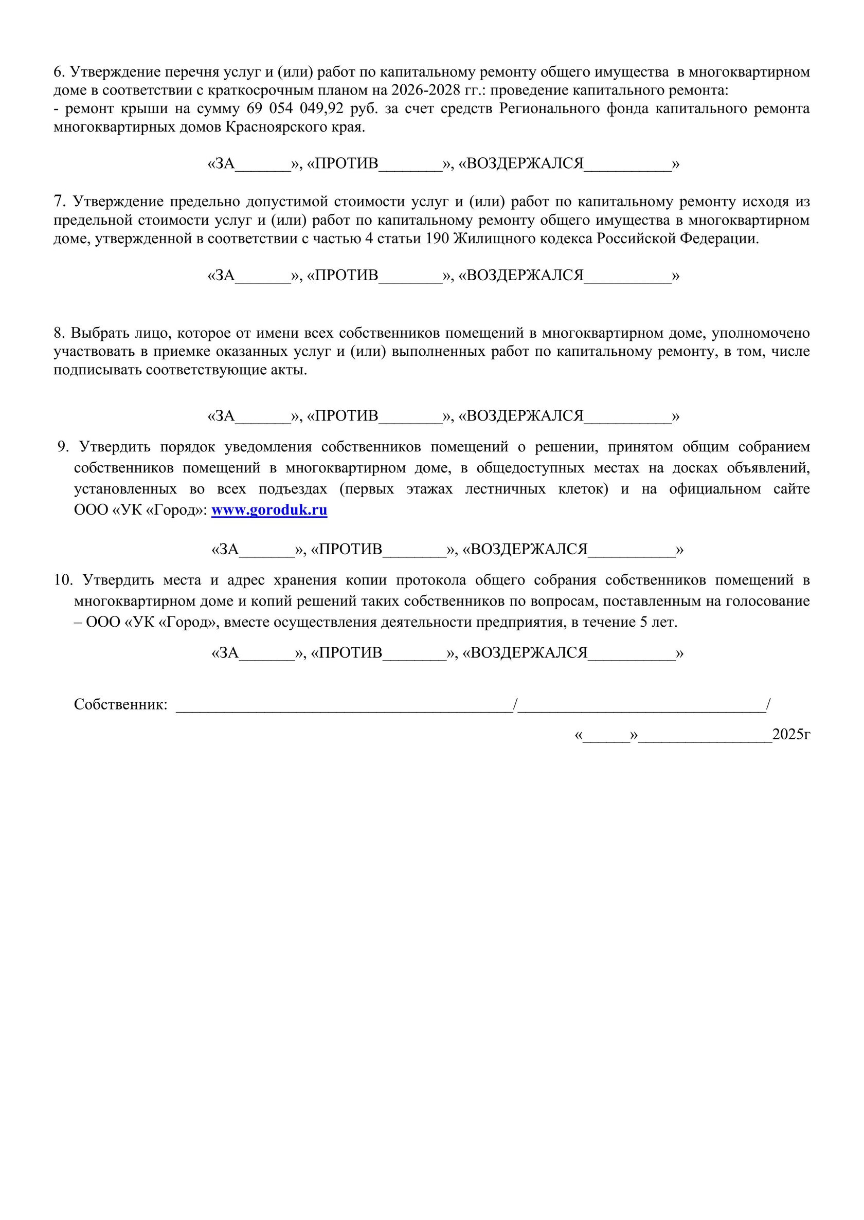 Решение собственников помещений по вопросам, поставленным на ОСС